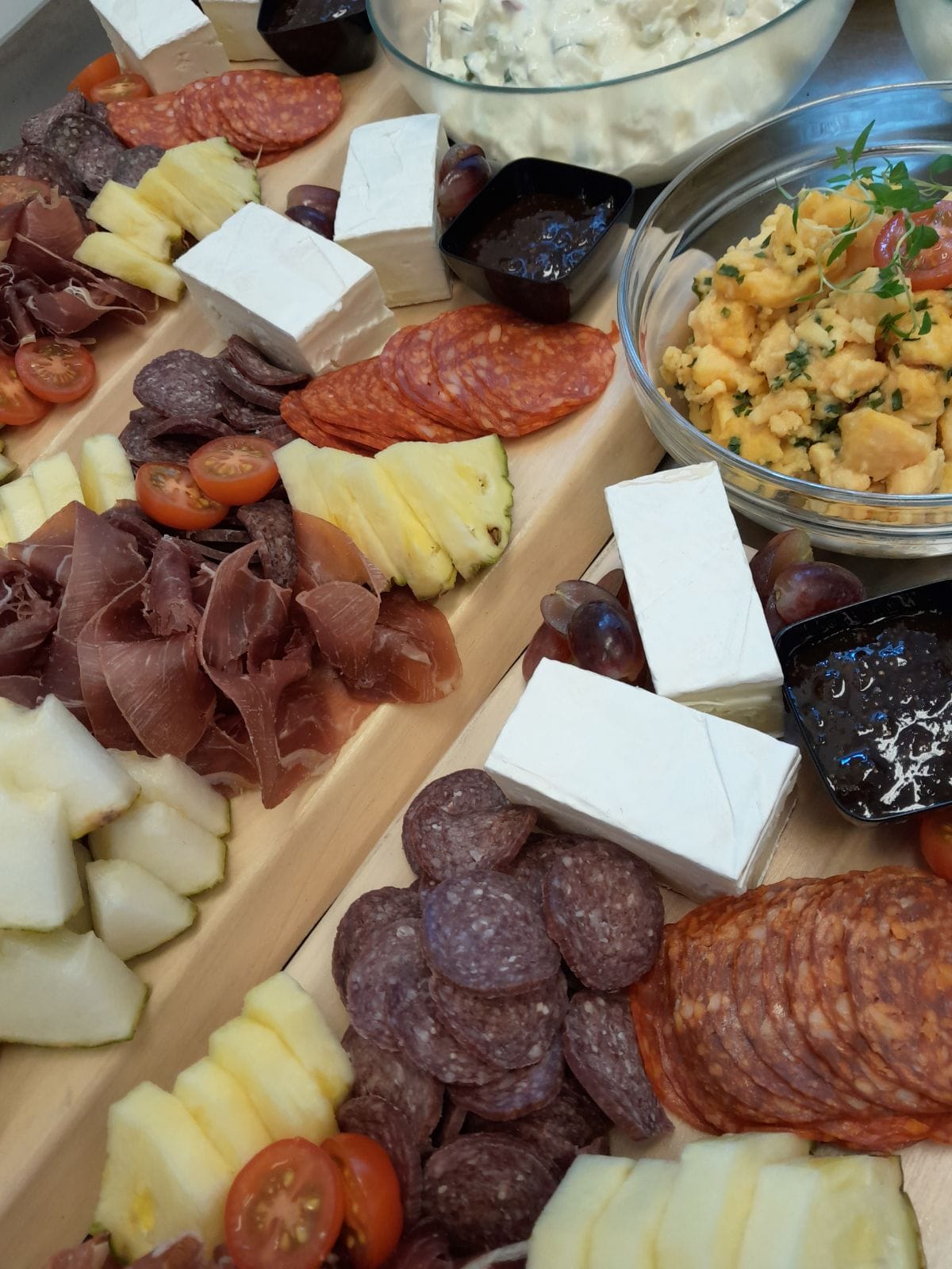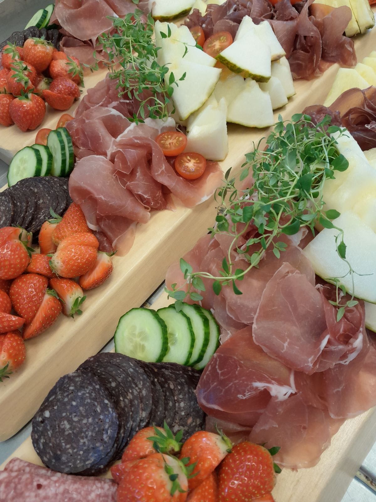 Vi kan levere alt fra enkle møtemåltider til full selskapsservering. Alt anrettes på stålfat, porselen eller glass – klart til å settes rett på bordet.
